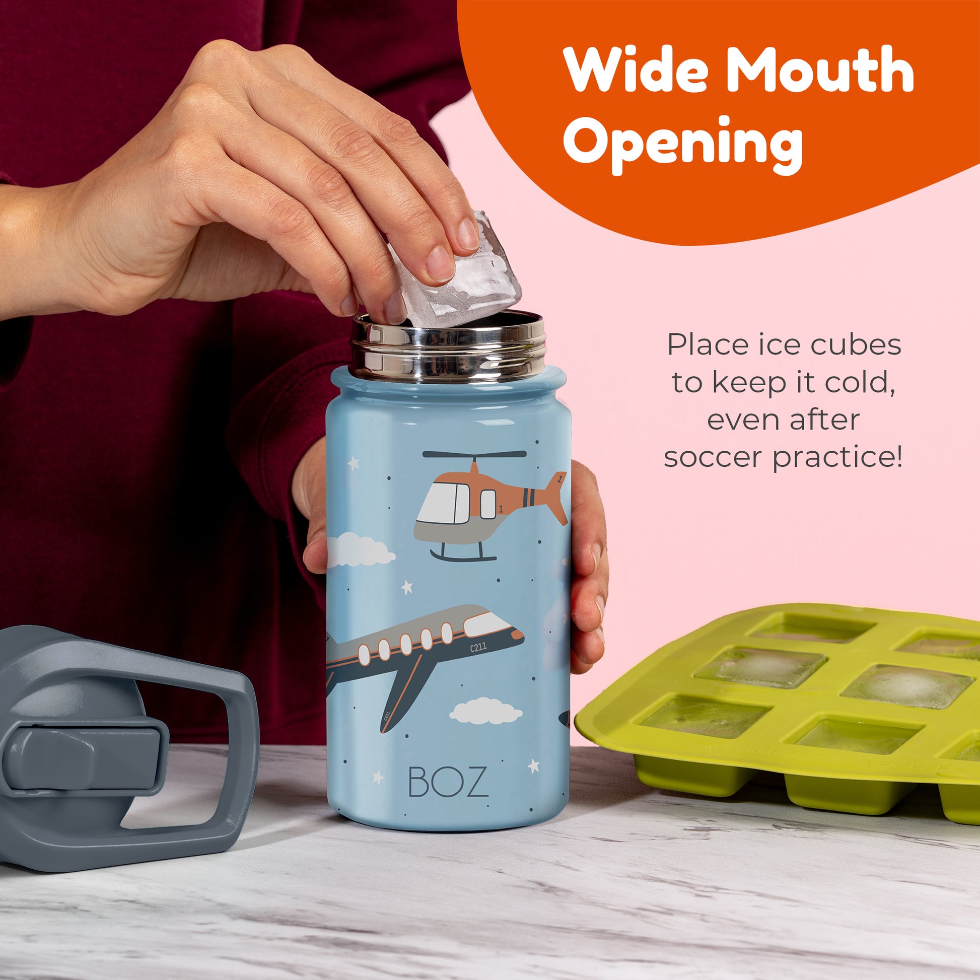 Each bottle features a leak-proof straw lid and easy-carry handle, perfect for little hands. Made from BPA-free, non-corrosive stainless steel, it's dishwasher-safe and built to withstand everyday drops and scuffs. Whether for daily use or as a matching set, BOZ Kids bottles make hydration fun and worry-free.