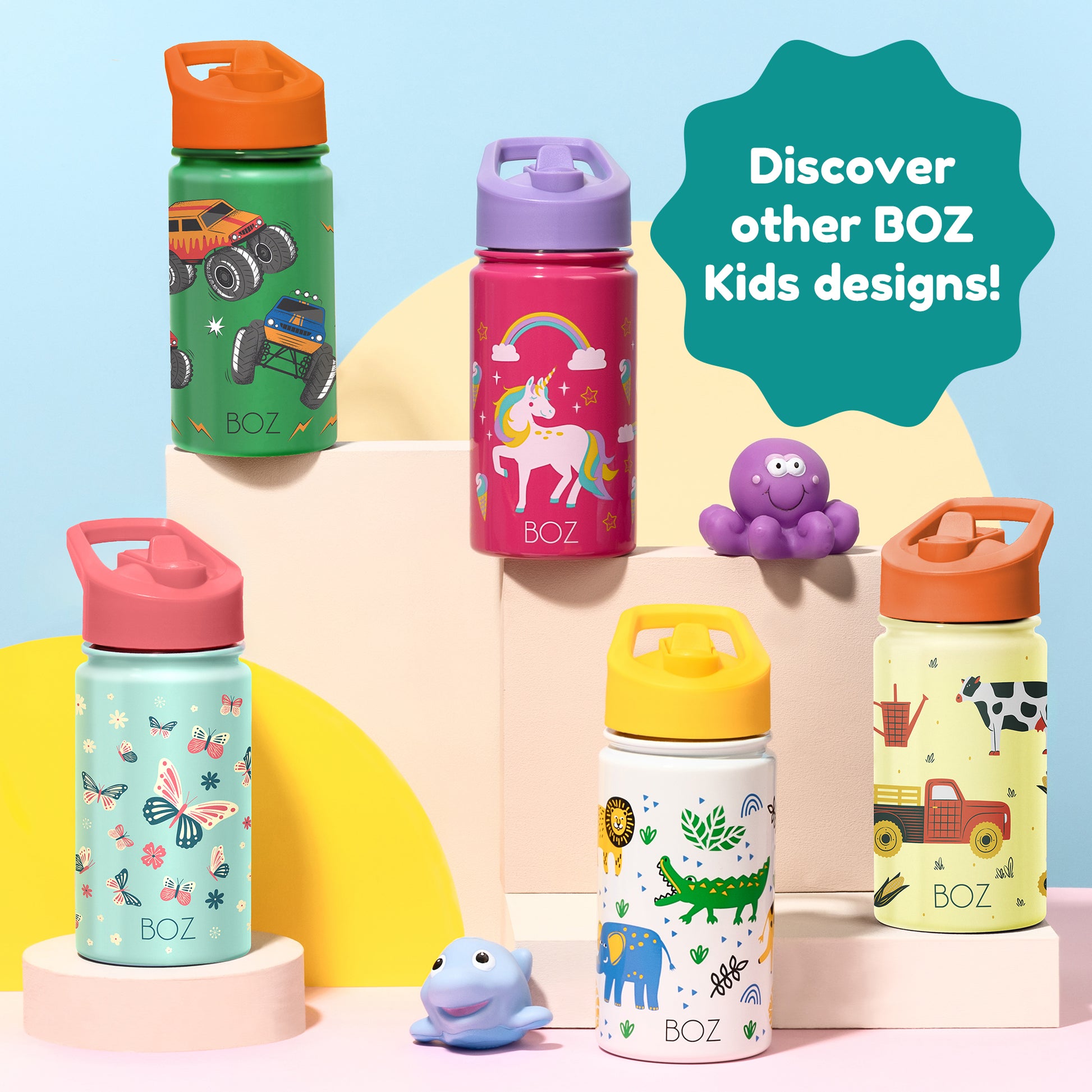 Each bottle features a leak-proof straw lid and easy-carry handle, perfect for little hands. Made from BPA-free, non-corrosive stainless steel, it's dishwasher-safe and built to withstand everyday drops and scuffs. Whether for daily use or as a matching set, BOZ Kids bottles make hydration fun and worry-free.