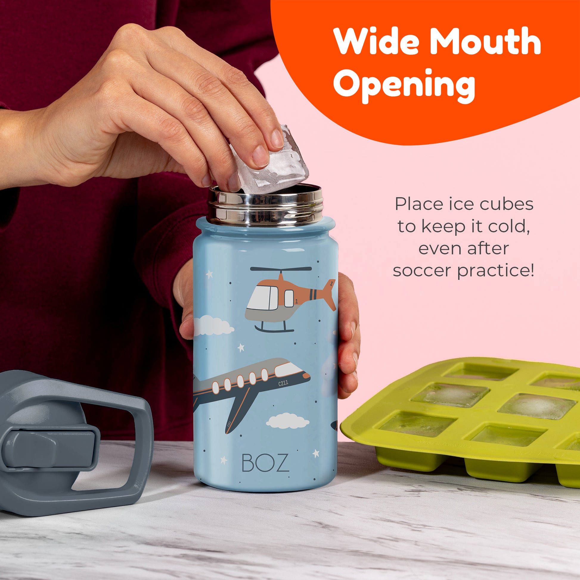 Each bottle features a leak-proof straw lid and easy-carry handle, perfect for little hands. Made from BPA-free, non-corrosive stainless steel, it's dishwasher-safe and built to withstand everyday drops and scuffs. Whether for daily use or as a matching set, BOZ Kids bottles make hydration fun and worry-free.
