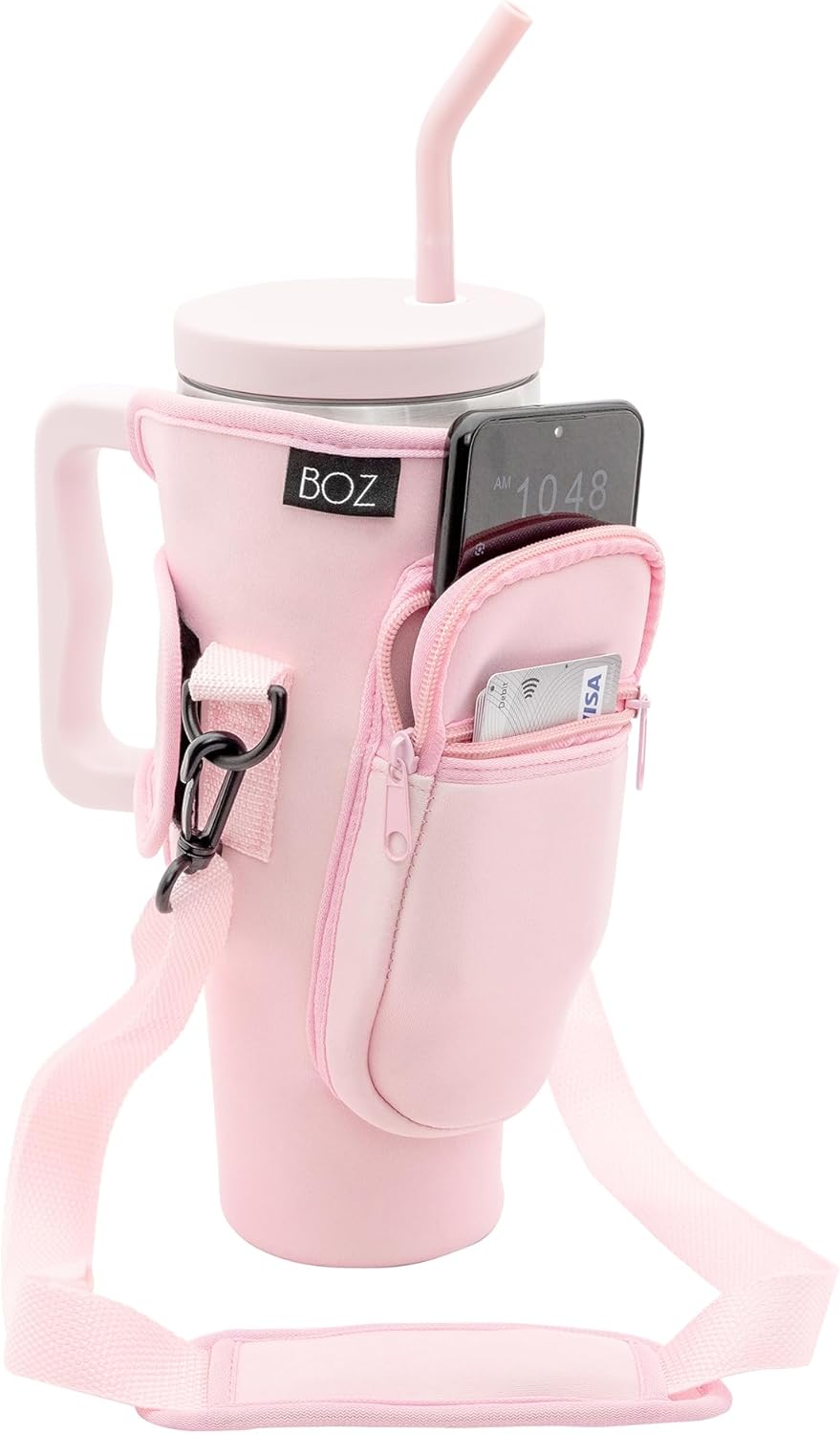 BOZ Water Bottle Carrier Bag with Phone Pocket - 40oz/1.2L Tumbler Carrier with Strap, Adjustable Water Bottle Holder, Sling Bag, Neoprene Protection, Water Bottle Holder with Strap (Pink)